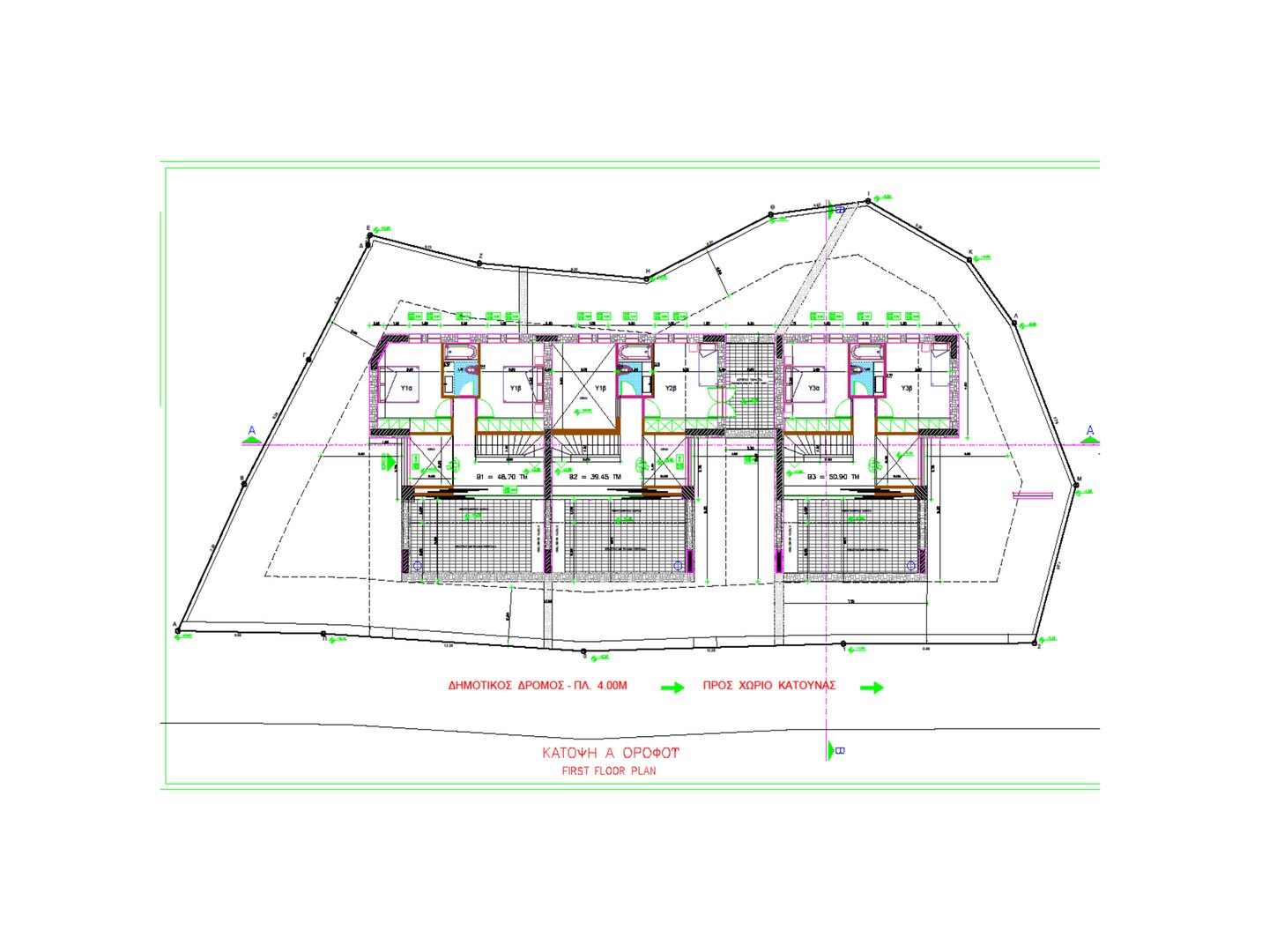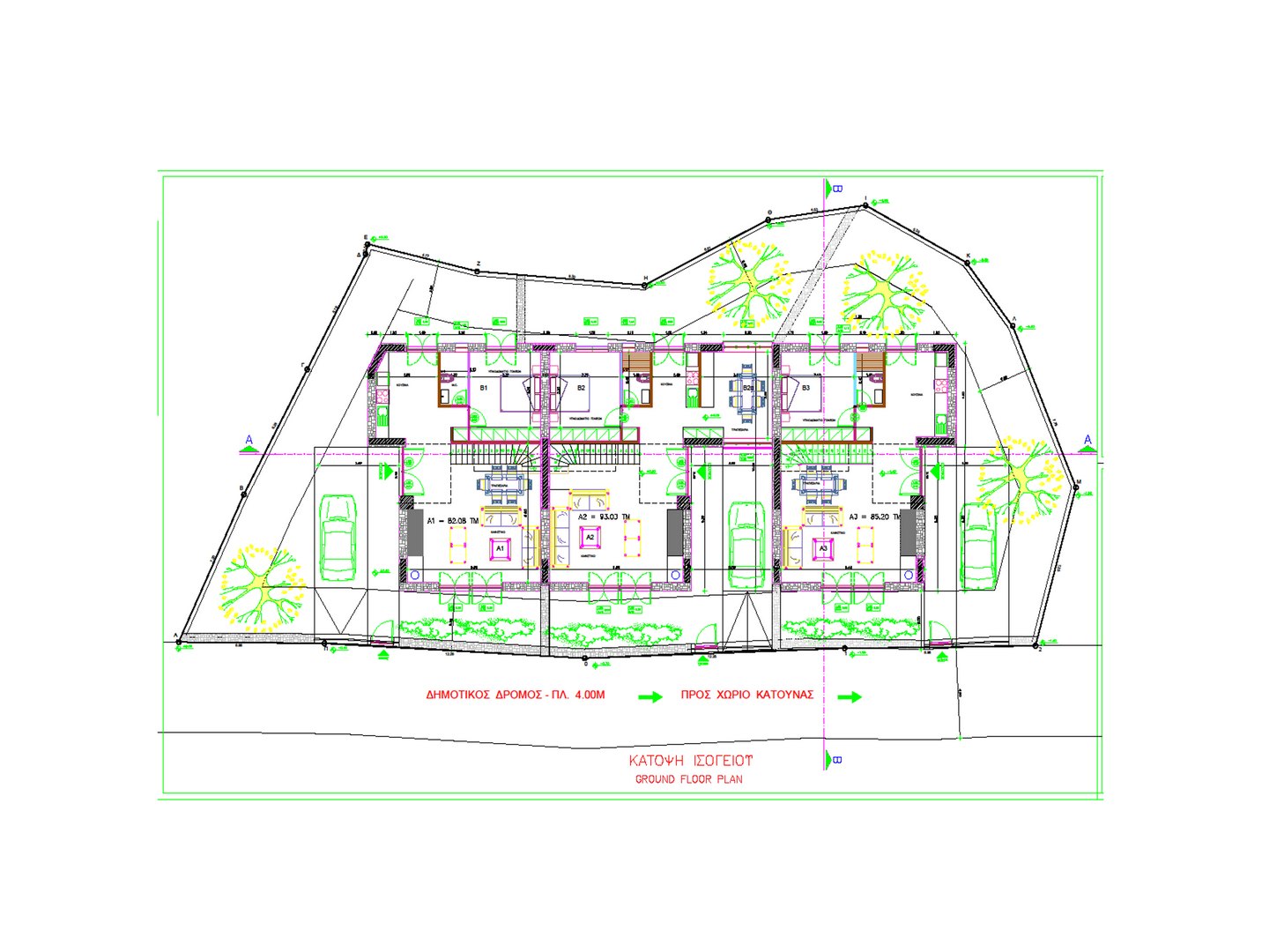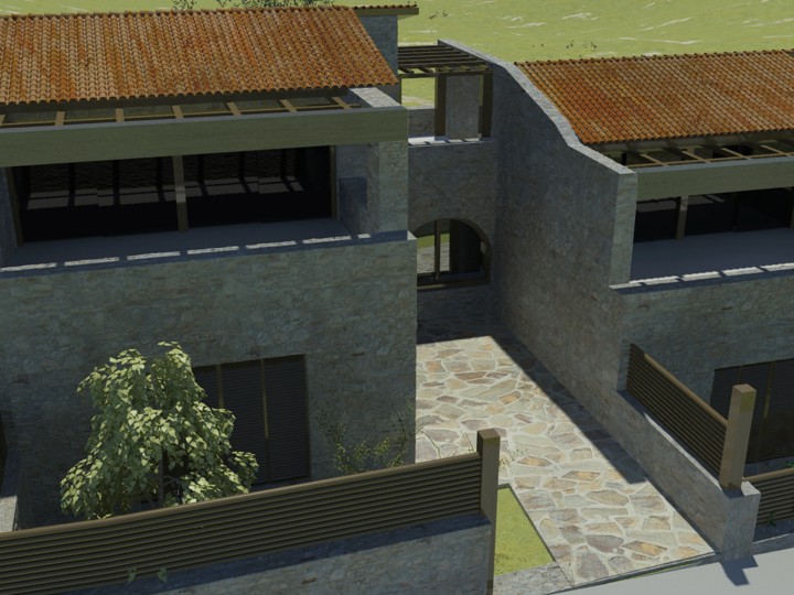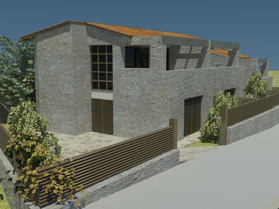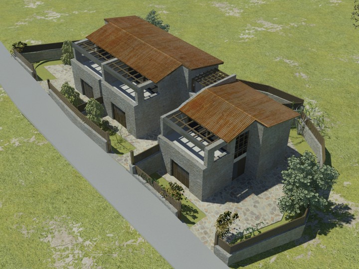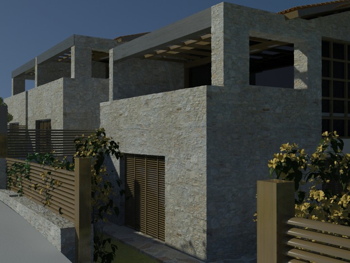 This particular project is to be constructed on the island of Lefkada, specifically in the village of Katouna. The building permit has been issued No 274/10 , and its revision is identified as A/A 1306052/25. Each residence consists of three bedrooms, a living room, and a kitchen. In the surrounding outdoor area of each house, compact swimming pools can be installed.