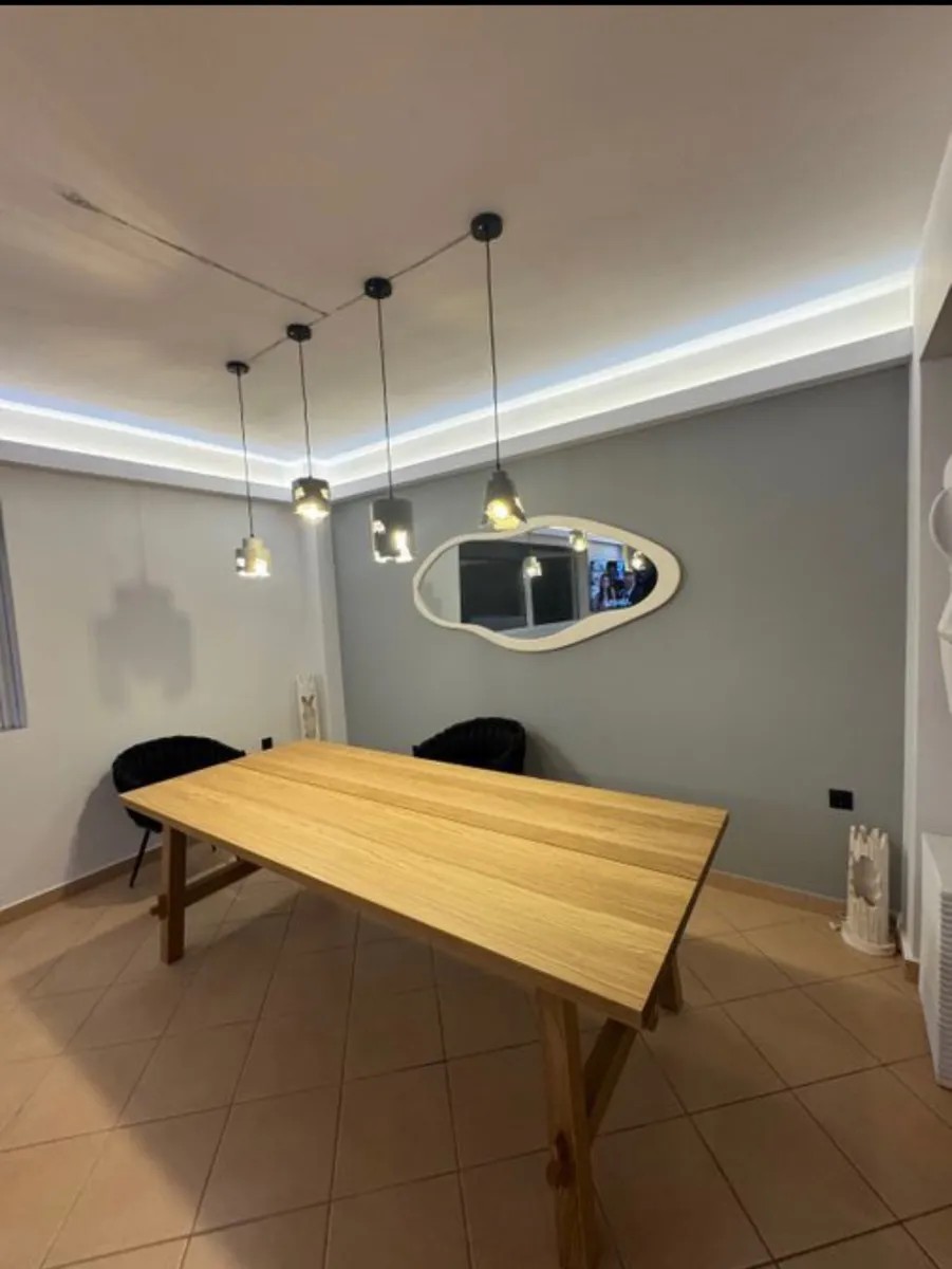 The apartment features a spacious and bright living room, an independent kitchen, two comfortable bedrooms, one bathroom, and an additional WC. It also includes a closed garage parking space and a storage room, while it is offered fully furnished, with all furniture included in the price. Technically, it is equipped with autonomous electric heating, air conditioning, aluminum frames with double glazing, tiled floors, and holds an Energy Class B certificate.
