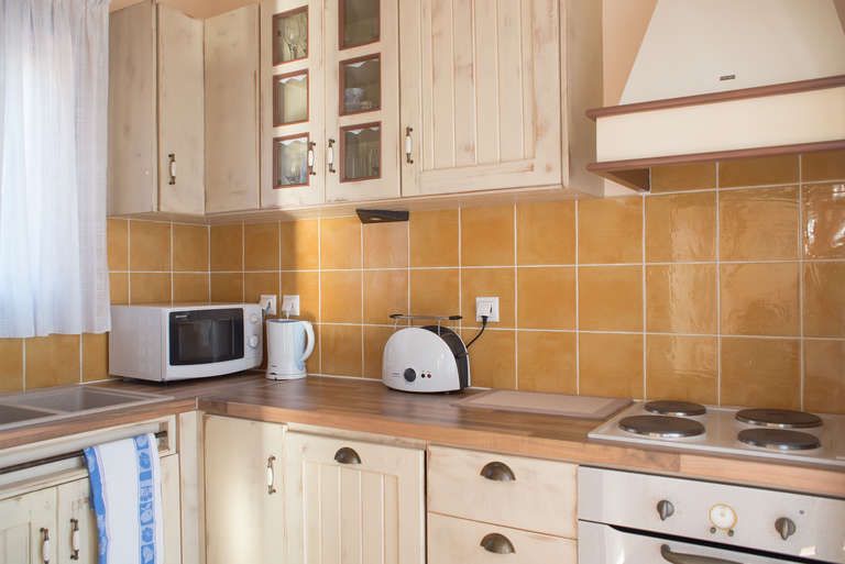 The two houses of 100 sq m extend in two levels and have exactly the same layout with each other. The ground floor has a fully equipped kitchen, one WC and an open plan sitting-dining area with fireplace. The 1st floor consists of 2 bedrooms, one of them with en-suite Jacuzzi shower, one additional bathroom with Jacuzzi and an office space.