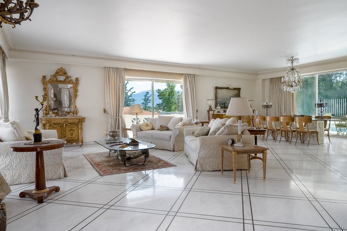 In the heart of Filothei’s most prestigious and secure enclave, stands a residence that is a true architectural work of art. The position affords sweeping views over Athens, from Lycabettus to Mount Hymettus. The neighborhood is defined by embassies, distinguished residences, and eminent cultural institutions (Theocharakis residence, a renowned Greek shipowner’s estate, the Karamanlis Foundation), offering discreet security, excellent access, and absolute tranquility.