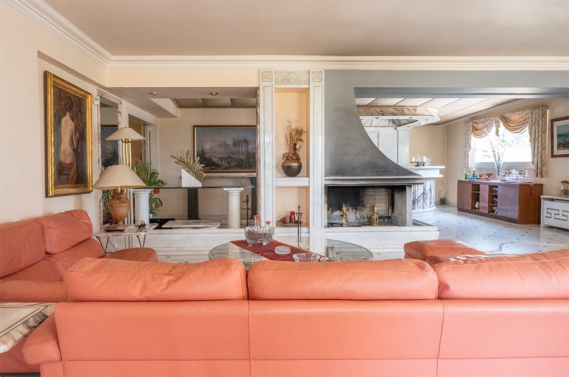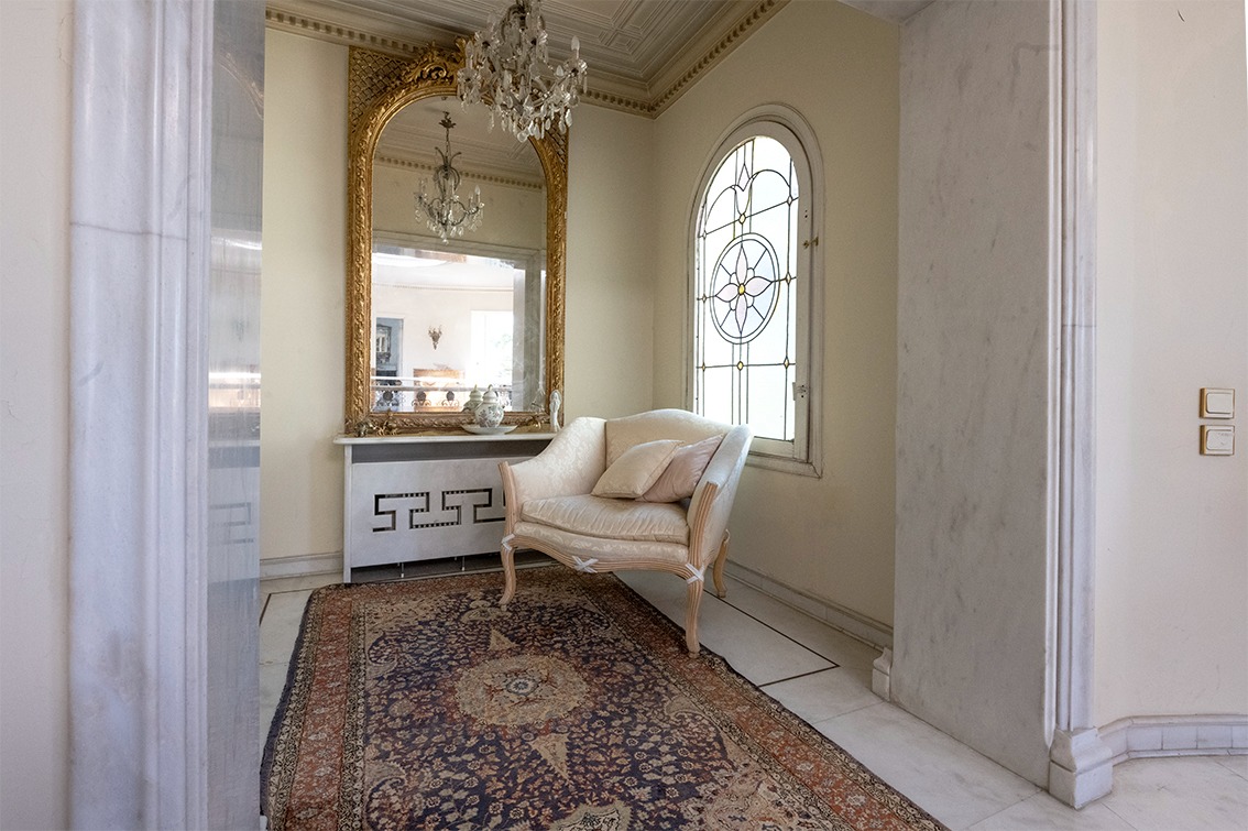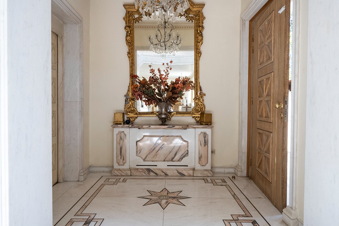 A rare example of marble-sculpted architecture in Attica. Interiors and exteriors are clad with collectible marbles originally sourced from the First National Bank of Greece.