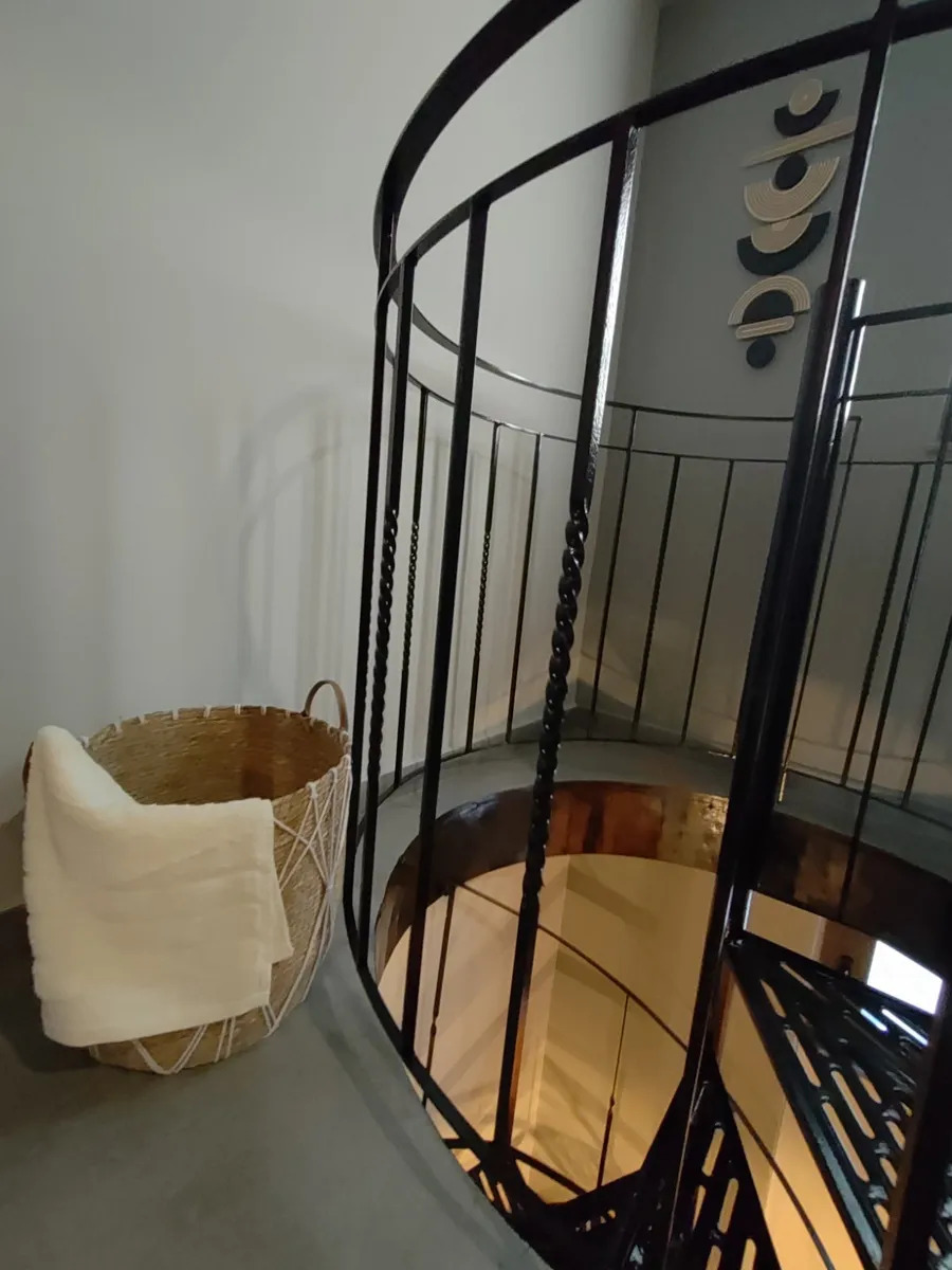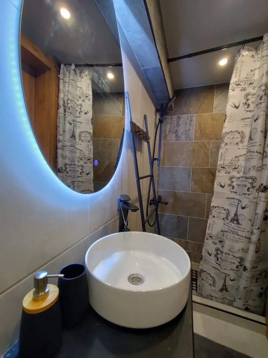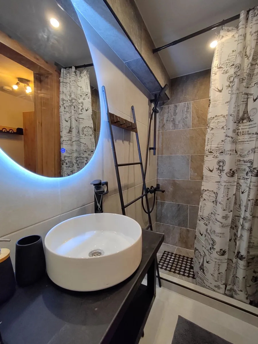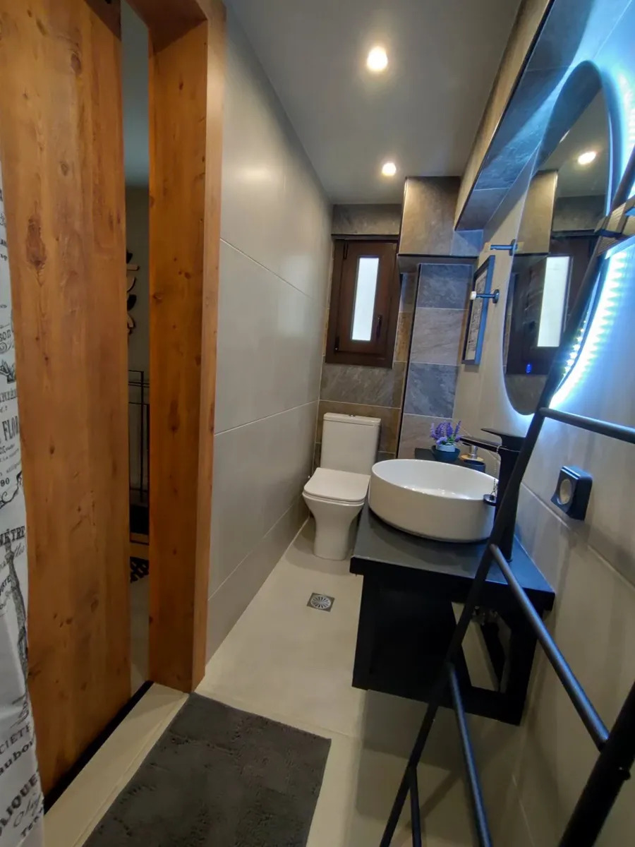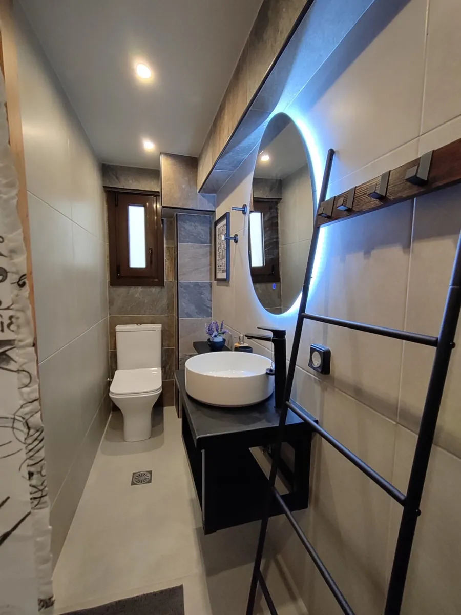 Mezzanine / Upper level (31.6 sq.m.): Spacious bedroom and modern bathroom