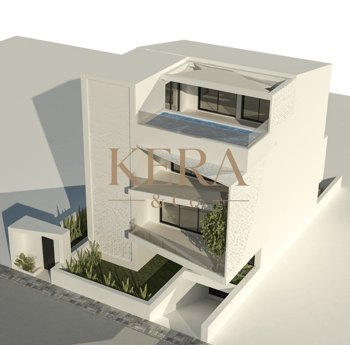 This luxury residential complex in the prestigious neighborhood of Alimos, Athens, features a premium 182 sq.m. split-level apartment designed for elegance and comfort.
